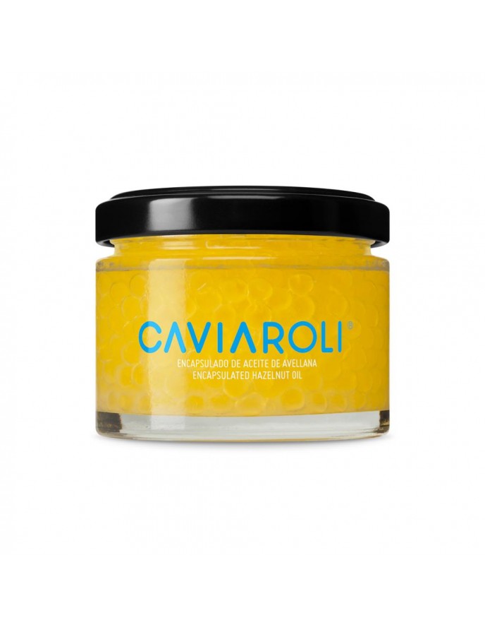 Esferas de aproximadamente 4-5 milímetros de diámetro, con aceite de avellana en su interior liquido que estallan en la boca cuando las muerdes. De color amarillo pálido y un inconfundible aroma a praliné. El aceite usado como materia prima se obtiene de avellanas mediterráneas con un punto de tueste que aportan un sabor y aroma inconfundibles.