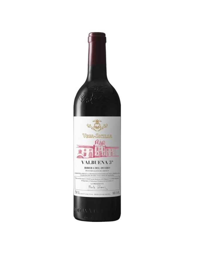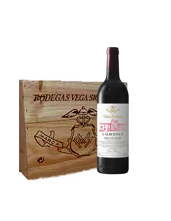 Valbuena 5º es la expresión más pura del tinto en Vega Sicilia, con una crianza de cinco años entre madera y botella, que da su nombre al vino: Valbuena 5º.