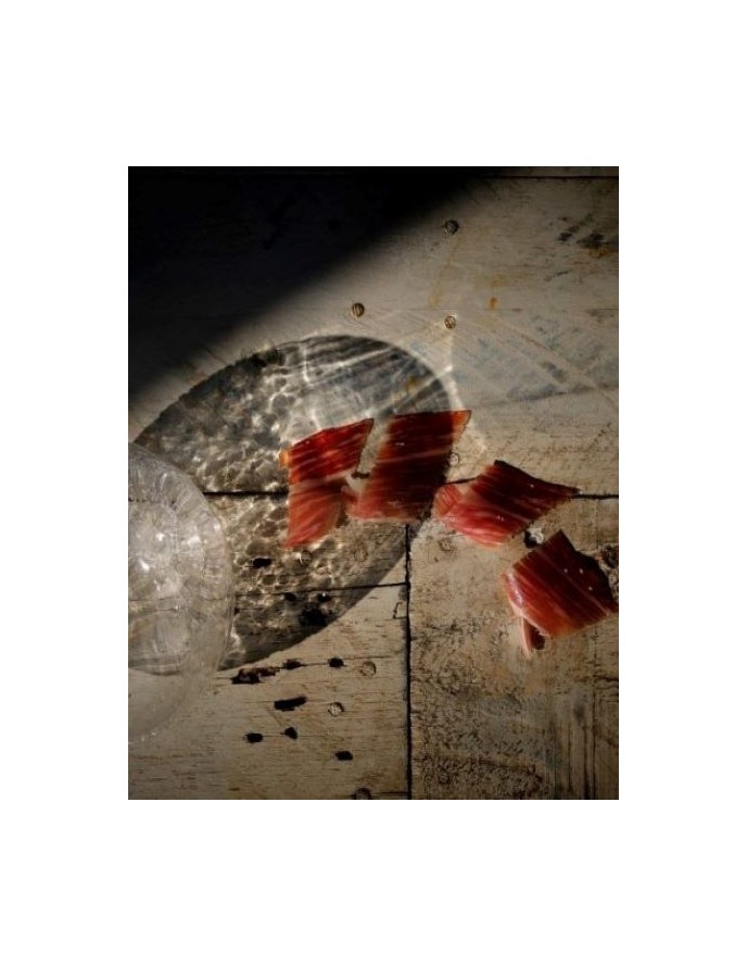 Elaborado con jamón ibérico de bellota. Únicamente con sal marina y más de 42 meses de curación natural.