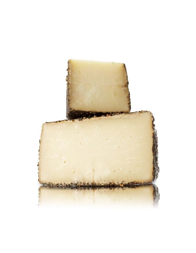 La pimienta negra con la que esta madurado este queso de oveja de más de 12 meses aporta al mismo un sabor picante y aromatizante importante. Elaborado con leche cruda de oveja seleccionada, la pimienta negra con la que madura en su corteza le aporta un sabor totalmente característico y muy apetecible para los amantes de esta especia.