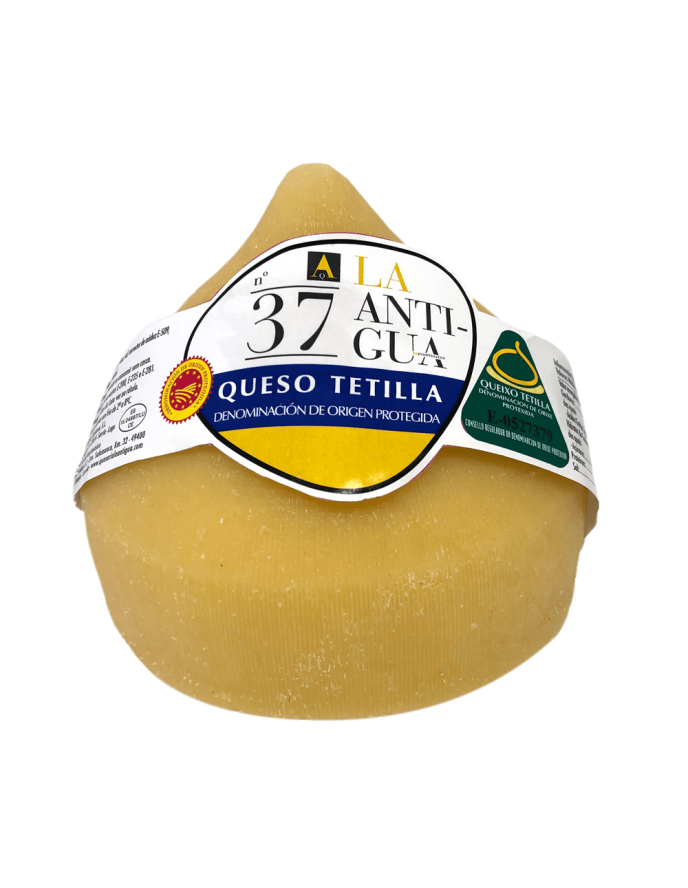 Queso Tetilla, Elaborado con leche de vaca bajo los estrictos controles de la Denominacion de Origen Queso Tetilla. Un queso suave y que nos recuerda a los pastos verdes de las tierras gallegas, con una ligera acidez en el paladar. Ideal para los amantes de los quesos suaves y de vaca.